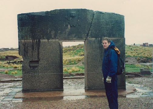Throughout our first day in Bolivia, Dan's stomach rebelled a bit. That night, to put it kindly, he experienced nearly continuous, flatulent colon clearing. It was quite a relief for both of us to experience the clear and fresh air outside our hotel room as we began our trek to explore the ancient city of Tiwanaku the next morning. The Sun Gate of Tiwanaku had long attracted Daniel with its enigmatic presence. His connection to it felt extremely deep, and visiting the Sun Gate was a high point of the trip for him. He was impatient as we explored the fabulous Tiwanaku museum, highly anticipating his first connection with the energy of the site. He definitely felt that he had lived in this energy before. The weather at Tiwanaku was