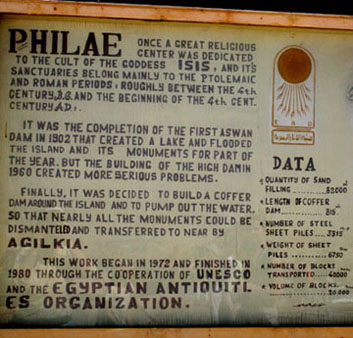 All of the buildings had to be completely dismantled and relocated in the 1970s to another island on higher ground. Philae was painstakingly moved and reconstructed on the larger and higher island of Agilkia. According to our guide at Philae, the site's original orientation to the sun was forever lost when the structures were relocated. No other reference points to this, however. It may have been local lore that was incorrect.