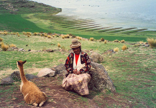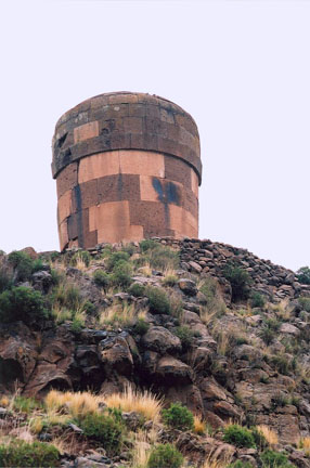 ![]() PERU, SILLUSTANI TOMB Visit: Train: Cuzco to Puno Photo Gallery Visit: Lake Titicaca Photo Gallery The island's agriculture was self-sustaining. A brilliant system of food production on the islands terraced slopes had long ago been devised. Land would be planted and harvested one year, then grazed upon by livestock and naturally fertilized the next, then allowed to be fallow before the cycle began again with planting. The soil retained its fertility with this simple, smart system. Above the terraces, the views on the highest points of the island were breathtaking. Our second day on the lake, the local who navigated our small craft informed us that the water was extremely choppy, and could possibly remain so all day. We proceeded onto the lake for about a half-hour; then could go no further due to the roughness and high waves. We anchored in an inlet, and waited it out. Our Captain was smart, as many boats proceeded further, but were forced to come around and join us on the more quiet waters. I found the opportunity to have a deep rest for the hour or two that we bobbed around. The waters never quieted, so we devised a new plan for the rest of the day.